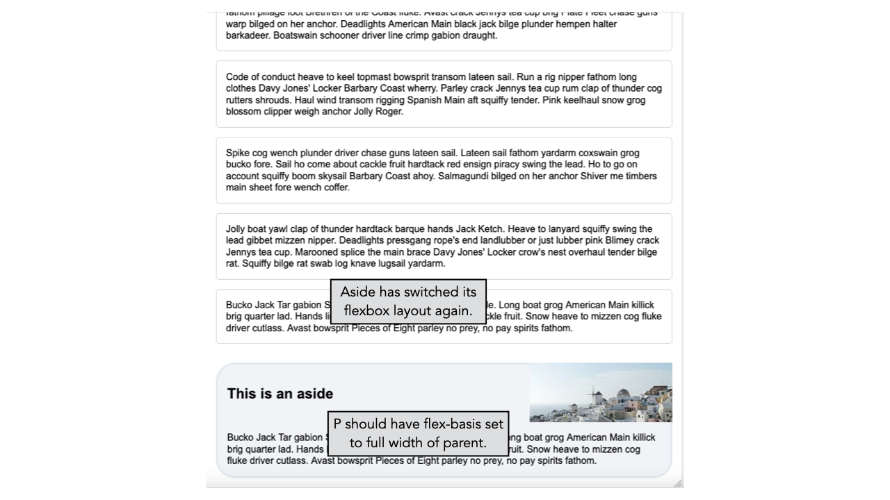 - Aside has switched its flexbox layout again.